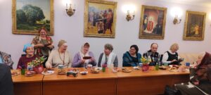 Прихожане Троицкого храма г. Сегежи собрались в приходском доме на «Покровские посиделки». Праздник Покрова Пресвятой Богородицы, отмечался широко и повсеместно. С него начиналась зима в крестьянском календаре, а деревенская молодежь практически по всей Карелии начинала посещать зимние бесёды. Ведущие посиделок припасли для гостей и умных речей, и забавушек на всякий вкус. Прихожанка Троицкого храма Квасникова Юлия Сергеевна подарила храму старинные православные книги. С интересом присутствующие узнали об истории появления этой литературы в семье Юлии Сергеевны, которая проживала в Тверской области г. Бологое. А еще на наших посиделках- бесёдах звучали православные песнопения в исполнении клироса Троицкого храма и благочинного Сегежского округа иерея Игоря Егорова. Ведущая праздника рассказала о традициях, народных приметах, связанных с Покровом, поведав, как широко отмечался этот день на Руси не только в церковных богослужениях, но и в народе. На посиделках, как известно, ещё шутки шутят, поют частушки, отгадывают загадки. Чем и занялись присутствующие на «Покровских посиделках». А закончилась встреча чаепитием. В подарок гости получили сувенир «Осенние листья». Посиделки получились по-домашнему добрыми и уютными!