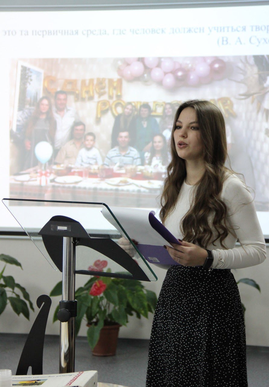 Герасимова Анастасия, учащаяся 10 класса МБОУ КМО «СОШ №3» | Костомукша — о традициях своей семьи: о совместном досуге, рыбалке, о семейных блюдах, показав альбом с живыми фотографиями.